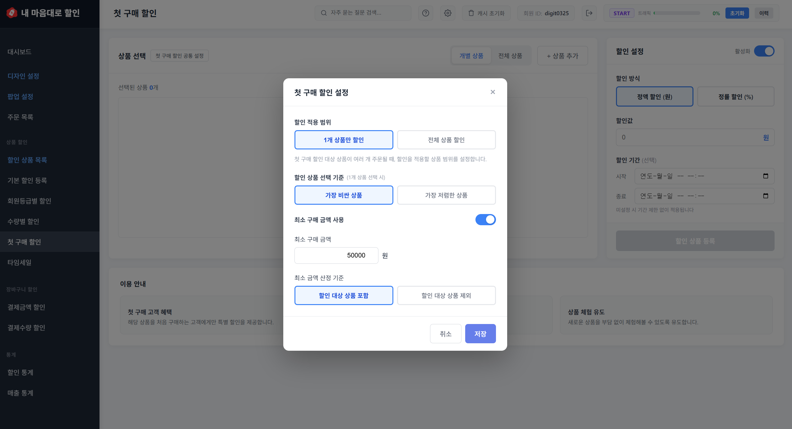 2. ์ฒซ ๊ตฌ๋งค ํ ์ธ ๊ณตํต ์ค์ ๊ธฐ๋ฅ ์ถ๊ฐ